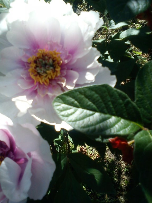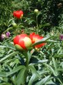 Pivoňky z botanické zahrady Na Slupi. Slunce svítilo, čerstvě rozkvetlé pivoňky byly plné pylu a nektaru, takže u jednoho květu vznikla včelí tlačenice. Zčásti se to povedlo zachytit.